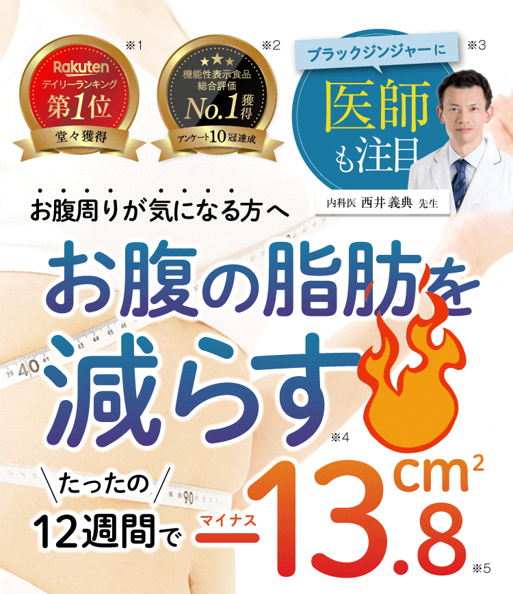 お腹まわりの脂肪を効率よく減らす手助けをしてくれるサプリは、医師も注目している「ブラックジンジャー」を使用した機能性表示食品の「メトファス」です。