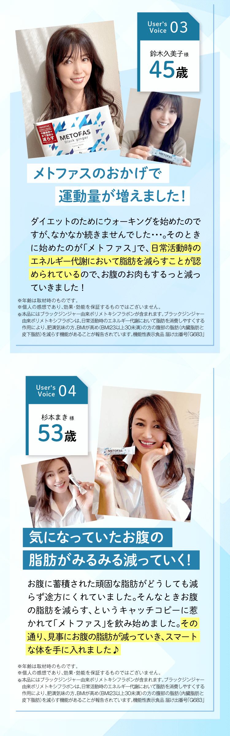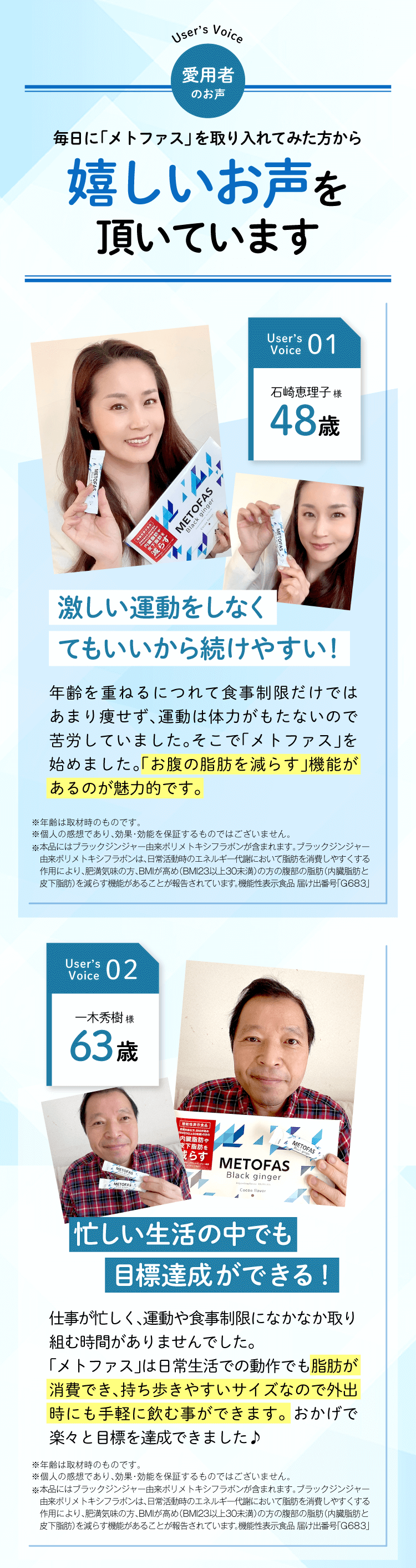 公式サイトにも記載されているのですが、実際にメトファスを使用した人の嬉しいお声を見ていただくと、40~60代の方の評価がとても良いことが分かります。