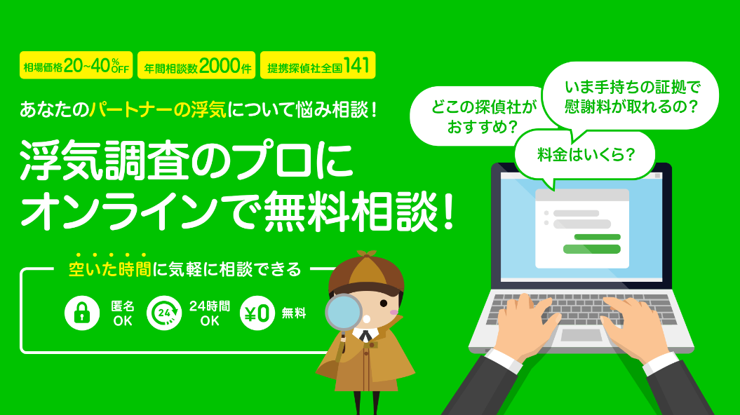 浮気・不倫の悩み、探偵社探しの疑問や質問など、なんでも相談を無料で受け付けています。